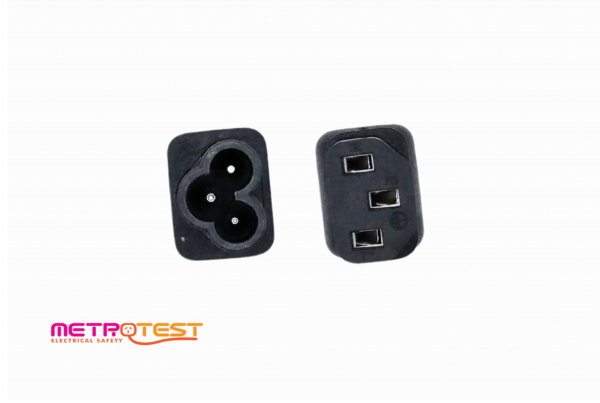 Converts female cloverleaf IEC socket on power supply cables as shown below, into a regular female IEC socket for ease of testing.
