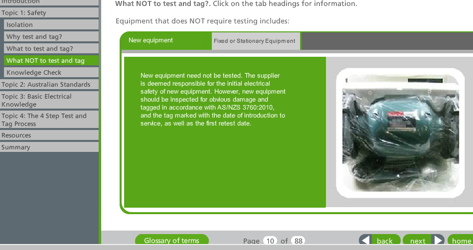You would be mistaken for thinking this is an Australian course, but this was on a New Zealand course. The provider has not differentiated between New Zealand and Australia. In New Zealand ‘New to Service’ equipment must be tested and tagged before being used in the workplace.